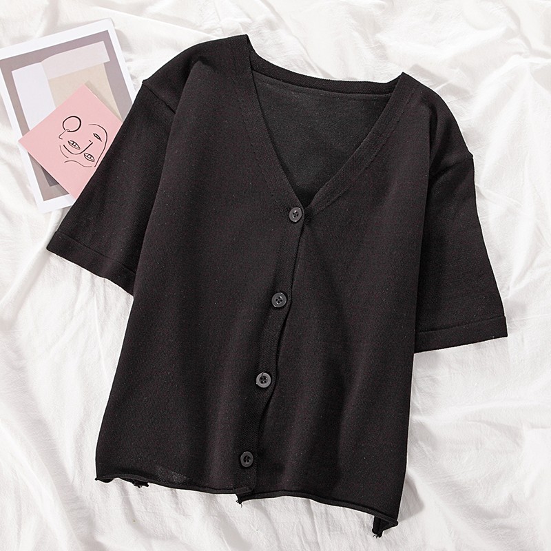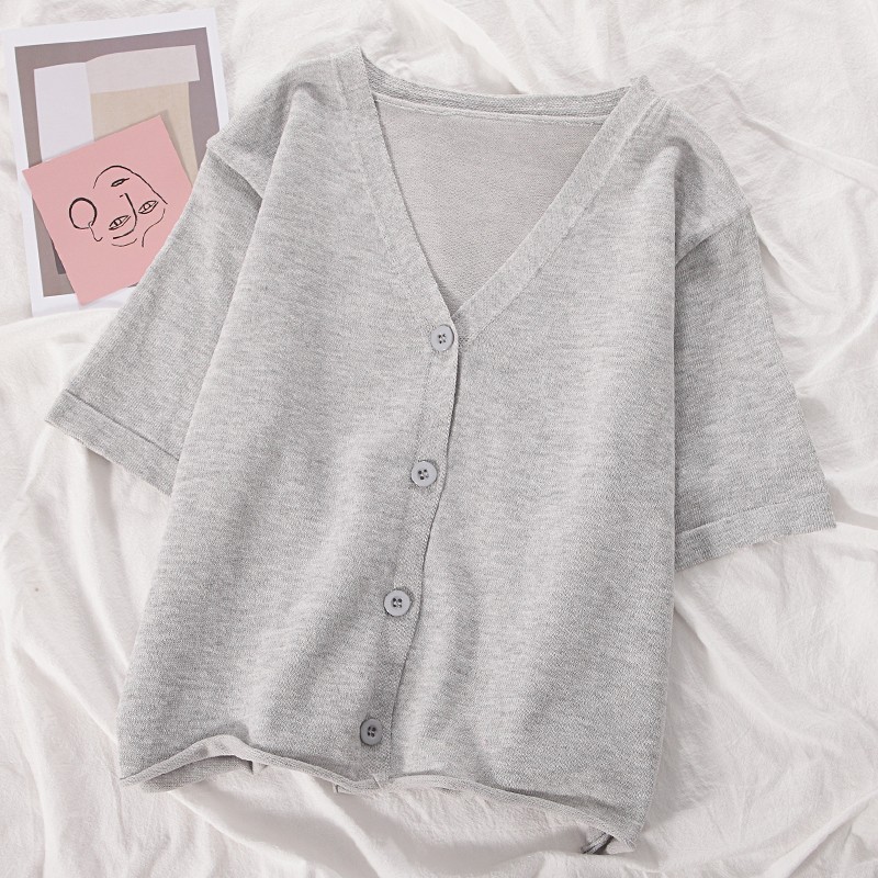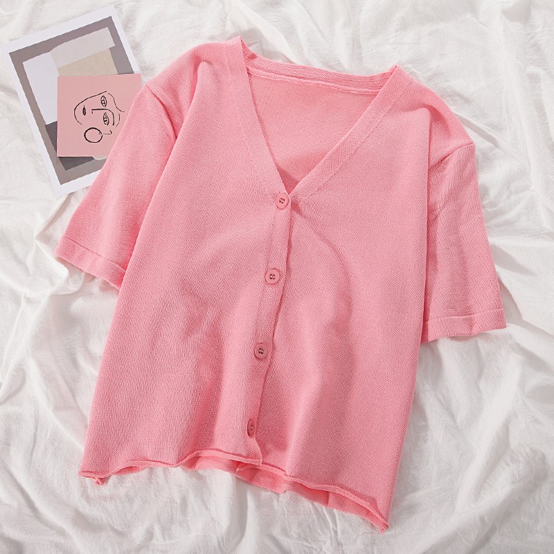 半小時前氣質v領薄款打底針織衫,2020夏季新款女裝短款開衫上衣 - 【買一送三】任選4件,僅需NT$1198