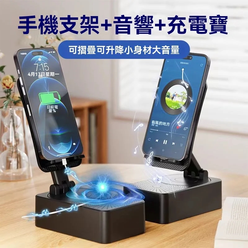7分鐘前一機多用超省心懶人福音 三合一旋轉手機支架+快充行動電源+藍牙音響隨身多功能數碼神器 - 【品質之選】1入組-NT$998